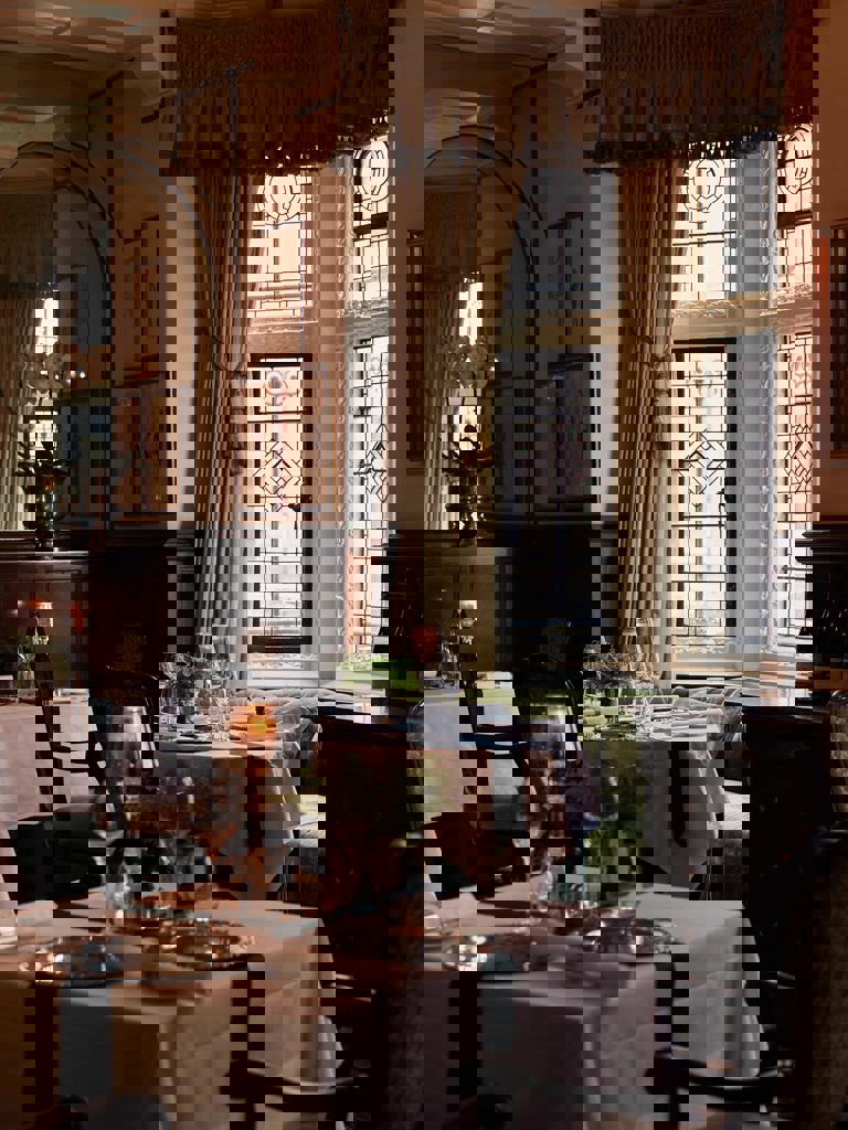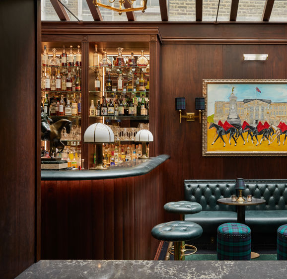 Step inside The Milestone’s newly renovated Stables Bar, named as an homage to the original use of the building in which it resides. Panelled with dark wood, sporting sophisticated leather and tartan-clad soft furnishings and paintings from Belgian sporting artist Elie Lambert, the Stables Bar provides a refined and comfortable setting. Green leather banquettes and moodily lit corners contrast beautifully with the natural light that streams into the high-ceilinged conservatory space.